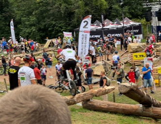 Unter den Augen von zahlreichen Zuschauern haben Nina Reichenbach und Jonas Friedrich die deutsche Meisterschaft im Fahrradtrial gewonnen.